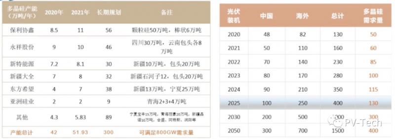 硅業(yè)分會統(tǒng)計,預計到2025年底,中國多晶硅產(chǎn)能為300萬噸/年,若包括海外供應,共計可以滿足全球1000GW左右的裝機量需求。