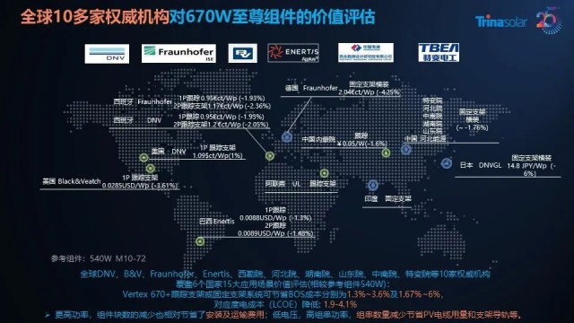 除此之外,DNV、拉美Enertis、北美Black&Veatch、西勘院等十余家國內(nèi)外權(quán)威機(jī)構(gòu)在全球范圍內(nèi)對600W+高功率組件進(jìn)行了廣泛的價(jià)值分析,覆蓋了15大應(yīng)用場景。