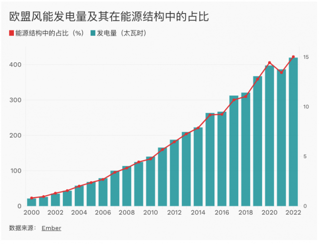 風能產(chǎn)業(yè)呈現(xiàn)出不同的景象:根據(jù)歐盟委員會的數(shù)據(jù),目前歐盟產(chǎn)能可以滿足歐盟85%的風能需求。