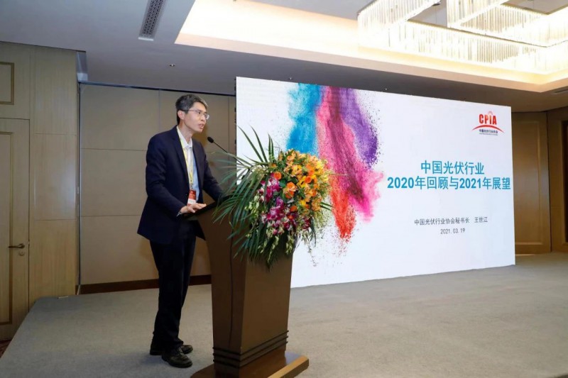 論壇上,中國光伏行業(yè)協(xié)會王世江秘書長做了題為《2020年中國光伏行業(yè)回顧和2021年中國光伏行業(yè)展望》的主題演講。王秘書長指出,2020年,國內(nèi)光伏電站裝機規(guī)模持續(xù)提升,投資成本繼續(xù)下降,產(chǎn)業(yè)集中度快速提升,技術(shù)不斷發(fā)展,融資規(guī)模不斷擴大,國際化布局不斷加強;展望2021年,全球光伏市場規(guī)模將加速擴大,源網(wǎng)荷儲一體化和多能互補大基地將成為電站開發(fā)關(guān)注熱點,技術(shù)快速迭代,行業(yè)將迎來擴產(chǎn)潮,“光伏+”模式帶來更多應(yīng)用可能性,預(yù)計光伏將占據(jù)可再生能源增量市場半壁江山。