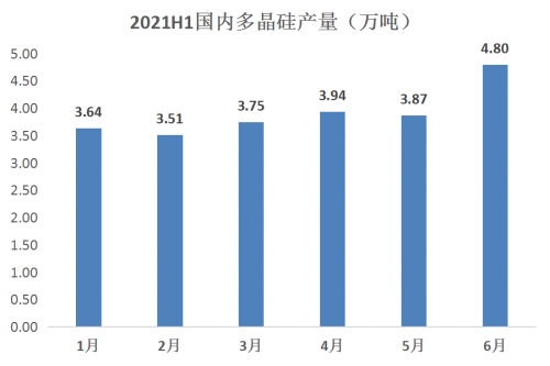 從硅業(yè)分會2021年上半年預計的硅片產量來看,硅料需求量合計約29.8萬噸,而國內供給量約為28.1萬噸,供給與需求大致處于緊平衡狀態(tài)。硅片產能的超前超量釋放導致硅料總體需求激增,硅料企業(yè)上半年基本都是滿產運營狀態(tài),部分硅料企業(yè)個別月份綜合開工率更是高達111%。
