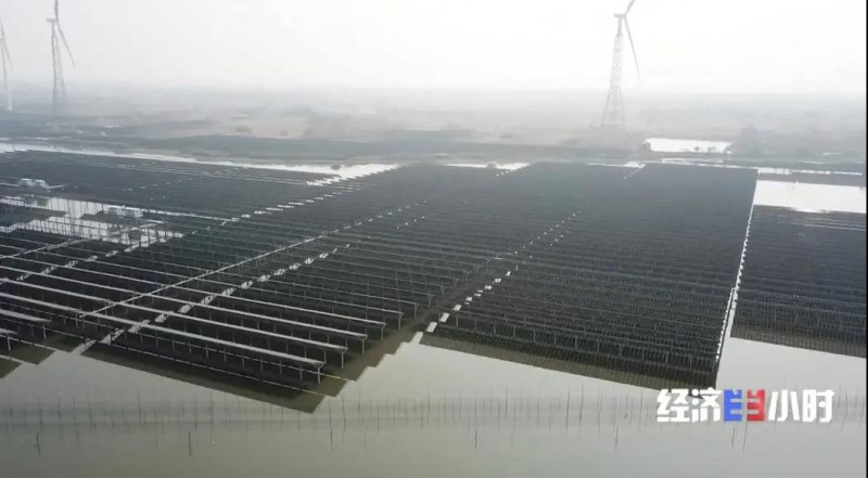 這個(gè)漁光一體光伏電站,光伏板能遮擋陽光,降低水面溫度,減少水分蒸發(fā)的同時(shí)抑制藻類生長,為魚蝦提供更好的生長環(huán)境。