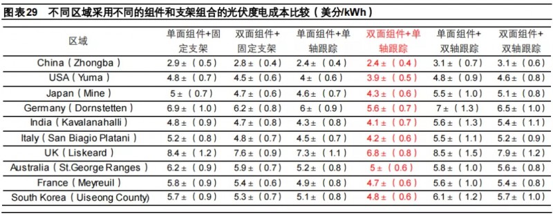 采用跟蹤支架雖然會(huì)增加初始投資和運(yùn)維成本,但由于具有明顯的發(fā)電增益,能夠?qū)崿F(xiàn)更低的度電成本。據(jù)彭博新能源的統(tǒng)計(jì),2021上半年,采用跟蹤支架系統(tǒng)的光伏電站項(xiàng)目的全球平均度電成本約38美元/MWh,明顯低于固定支架光伏項(xiàng)目。