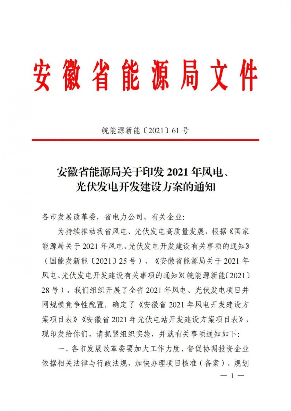 此外,安徽省要求各投資企業(yè)要切實加快項目建設進度,除并網(wǎng)消納受限原因外,光伏電站項目應于2022年底前首次并網(wǎng),2023年6月底前全容量并網(wǎng);風電項目應于2023年底前首次并網(wǎng),2024年6月底前全容量并網(wǎng)。