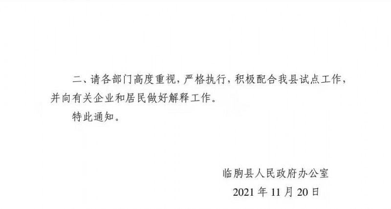 二、請各部門高度重視,嚴格執(zhí)行,積極配合我縣試點工作,并向有關企業(yè)和居民做好解釋工作。