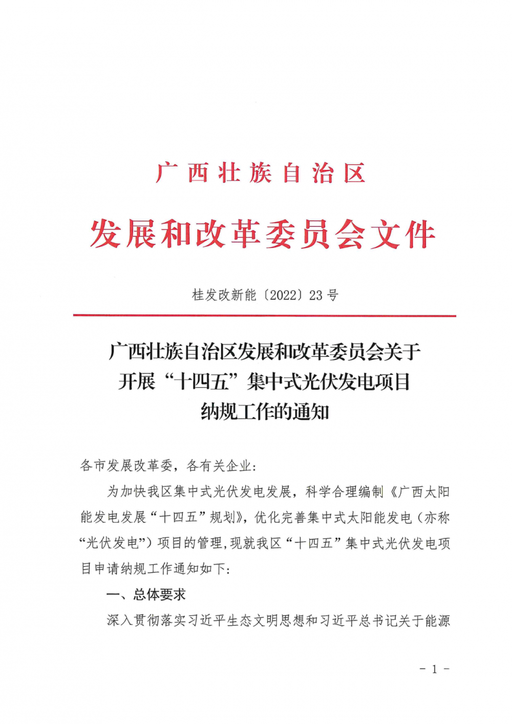 1月8日,廣西發(fā)改委印發(fā)《開展"十四五"集中式光伏發(fā)電項目納規(guī)工作的通知》,就建立集中式光伏規(guī)劃項目庫給出指導意見。
