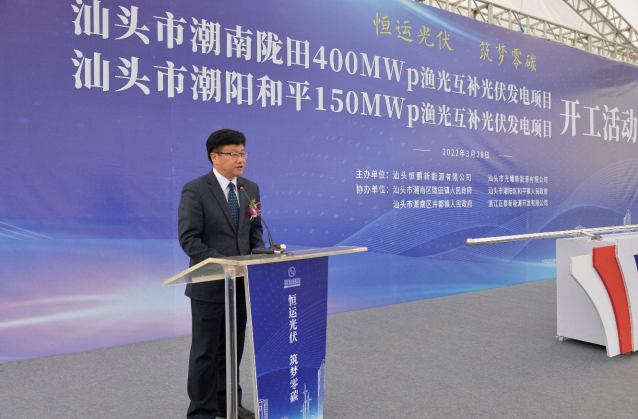 汕頭市潮南區(qū)委副書記王曉韓,現(xiàn)代能源集團黨委副書記、總經(jīng)理肖立,浙江正泰新能源開發(fā)有限公司總裁助理黃啟銀,恒運集團黨委委員、副總經(jīng)理周水良,恒運新能源公司董事長、汕頭恒鵬新能源有限公司執(zhí)行董事張文強以及潮南區(qū)隴田鎮(zhèn)、潮南區(qū)井都鎮(zhèn)、潮陽區(qū)和平鎮(zhèn)等出席開工活動。(彭一晟)