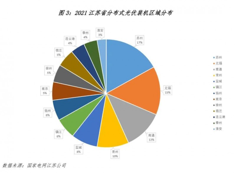2021 年 9 月,國(guó)家能源局官網(wǎng)公布了全國(guó)整縣(市、區(qū))屋頂分布式光伏開發(fā)試點(diǎn)名單,在 676 個(gè)試點(diǎn)縣(市、區(qū))中江蘇共有 59 個(gè),數(shù)量居全國(guó)第三。