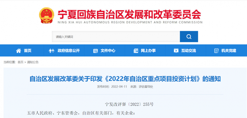 4月11日,寧夏發(fā)改委發(fā)布《2022年自治區(qū)重點(diǎn)項(xiàng)目投資計(jì)劃》,涉及光伏重點(diǎn)項(xiàng)目為6個(gè)制造業(yè)項(xiàng)目、17個(gè)重點(diǎn)光伏發(fā)電建設(shè)項(xiàng)目,規(guī)模為3.425GW。