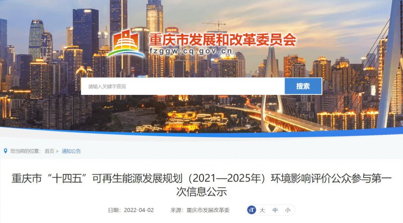 原標(biāo)題:重慶市“十四五”可再生能源發(fā)展規(guī)劃(2021—2025年)環(huán)境影響評(píng)價(jià)公眾參與第一次信息公示