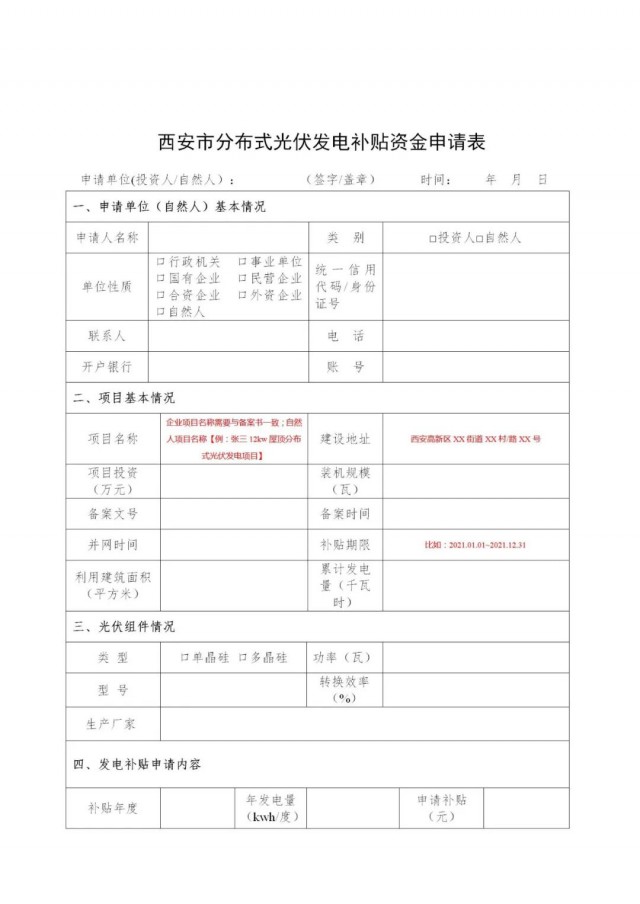 (一)西安市分布式光伏發(fā)電補(bǔ)貼資金申請(qǐng)表(見(jiàn)附件1);
