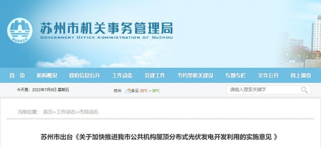 意見明確,到2025年底,蘇州市公共機構(gòu)新建建筑可安裝光伏屋頂面積實現(xiàn)光伏覆蓋率達到50%以上,全市公共機構(gòu)既有建筑屋頂建設(shè)光伏設(shè)施,安裝比例不低于可安裝光伏屋頂面積的50%。常熟市、吳江區(qū)、吳中區(qū)、相城區(qū)等四個全國整縣(市、區(qū))屋頂分布式光伏開發(fā)試點地區(qū)公共機構(gòu)于2023年底前達成上述目標(biāo)