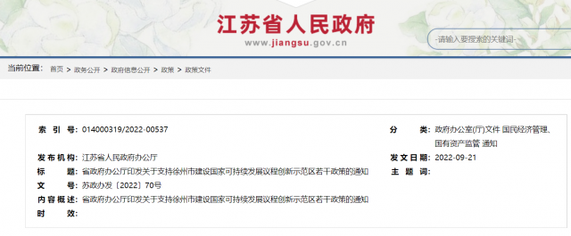 省政府辦公廳印發(fā)關于支持徐州市建設國家可持續(xù)發(fā)展議程創(chuàng)新示范區(qū)若干政策的通知
