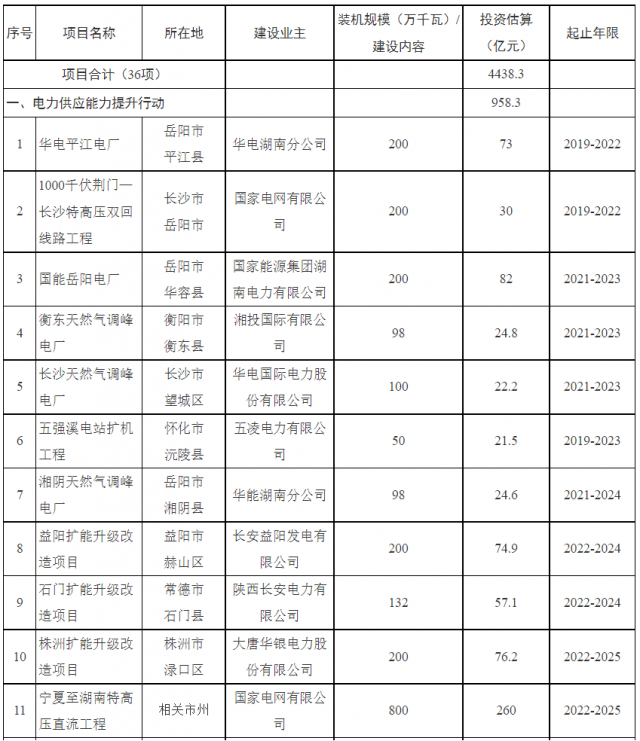 2022年10月13日,湖南省發(fā)改委根據(jù)省政府“三大支撐八項重點”部署,制定《湖南省電力支撐能力提升行動方案(2022—2025年)》。方案中提出: