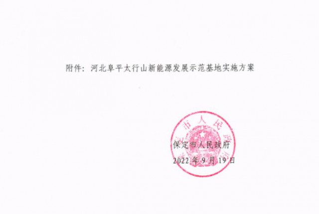 關于同意開展阜平太行山新能源發(fā)展示范基地建設的復函