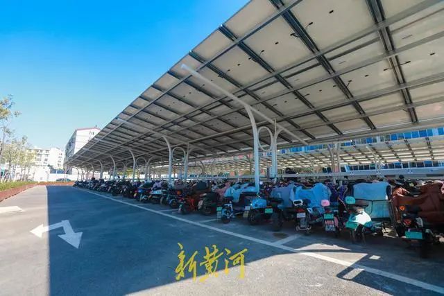 山東大學(xué)國(guó)家大學(xué)科技園停車(chē)場(chǎng)的車(chē)棚采用光伏一體化結(jié)構(gòu),光伏面板架設(shè)于停車(chē)位上方的鋼桁架上,以光伏電池板代替車(chē)棚頂面,既能避免車(chē)輛日曬雨淋,所發(fā)出的電力又能為園區(qū)、車(chē)棚提供照明,起到一舉多得的效果。車(chē)棚內(nèi)安裝了充電樁、儲(chǔ)能等配套設(shè)施,可以為電動(dòng)汽車(chē)、電動(dòng)自行車(chē)充電,實(shí)現(xiàn)了光儲(chǔ)充一體化,綠色低碳場(chǎng)景再添新貌,進(jìn)一步邁向智慧零碳園區(qū)。