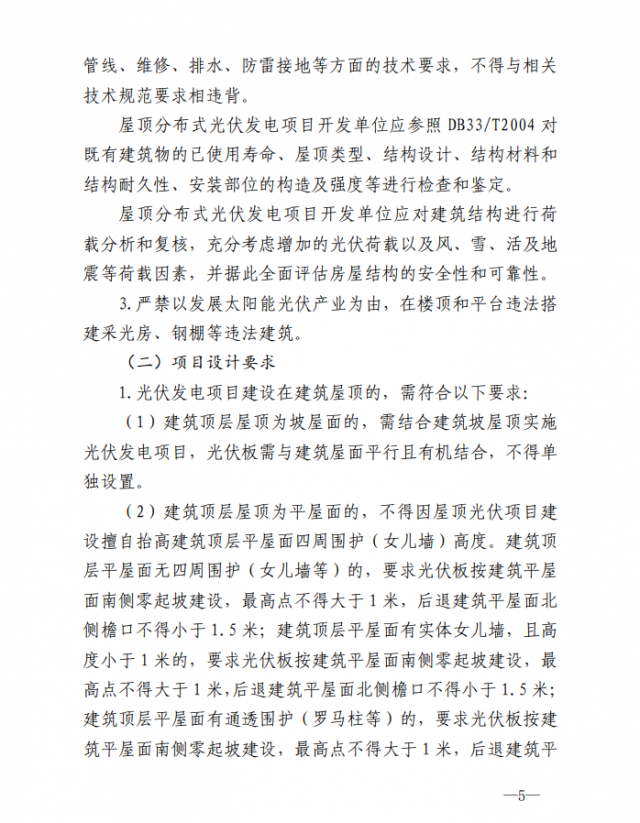 1.屋頂光伏項目建設(shè)需符合相關(guān)規(guī)劃,設(shè)計施工符合《浙江省整縣(市、區(qū))推進屋頂分布式光伏開發(fā)工作導則》《浙江既有民用建筑加裝太陽能光伏系統(tǒng)設(shè)計導則》和本通知相關(guān)要求,并與周邊建筑物、景觀相協(xié)調(diào)。