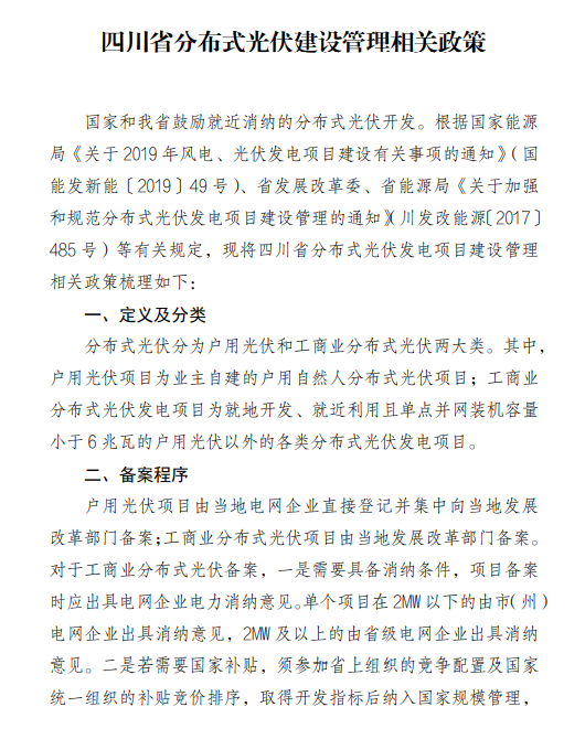 11月17日,四川省綿陽市發(fā)改委發(fā)布《四川省分布式光伏建設(shè)管理相關(guān)政策》,對(duì)分布式光伏進(jìn)行了明確的定義及分列,明確了項(xiàng)目備案流程及補(bǔ)貼情況。