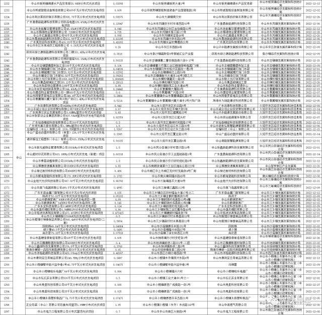 分布式光伏項(xiàng)目備案1.58GW,其中503MW為整縣(鎮(zhèn))開(kāi)發(fā)項(xiàng)目。梅州由首華恒邦投資建設(shè)大埔縣湖寮鎮(zhèn)、青溪鎮(zhèn)、三河鎮(zhèn)、銀江鎮(zhèn)、洲瑞鎮(zhèn)、光德鎮(zhèn)、桃源鎮(zhèn)、百侯鎮(zhèn)等14個(gè)鎮(zhèn)戶用屋頂,共100MW;湛江由中電建投資建設(shè)河唇鎮(zhèn)、石頸鎮(zhèn)、石嶺鎮(zhèn)等各鎮(zhèn)戶用屋頂,華能和廣東電力投資建設(shè)良垌鎮(zhèn)戶用屋頂,總?cè)萘抗?17MW。