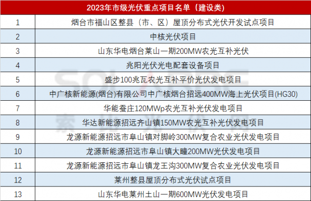 1月28日,煙臺市發(fā)展改革委印發(fā)2023年市級重點項目名單,市級重點項目總量537個、總投資2.2萬億、年度計劃投資2625億元,整體質(zhì)量規(guī)模再創(chuàng)歷史新高。其中光伏項目13個,規(guī)模合計2.37GW。