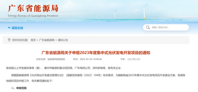廣東省能源局關(guān)于申報(bào)2023年度集中式光伏發(fā)電開(kāi)發(fā)項(xiàng)目的通知