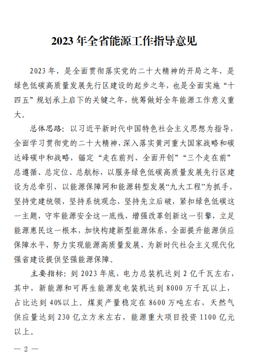 山東省能源局關(guān)于印發(fā)2023年全省能源工作指導(dǎo)意見的通知