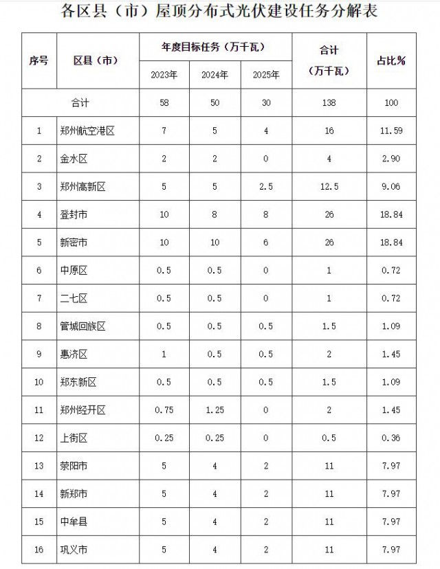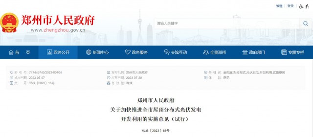 7月20日,鄭州市人民政府發(fā)布《關(guān)于加快推進(jìn)全市屋頂分布式光伏發(fā)電開發(fā)利用的實施意見(試行)》(簡稱《意見》),明確工作目標(biāo)、重點任務(wù)和支持措施等事項。