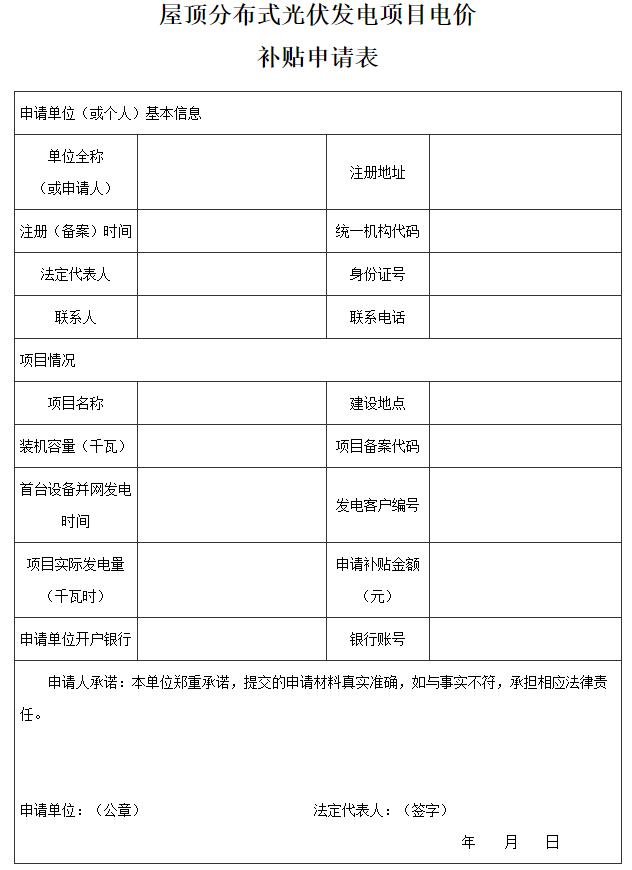 2.屋頂分布式光伏發(fā)電項目電價補(bǔ)貼申請表