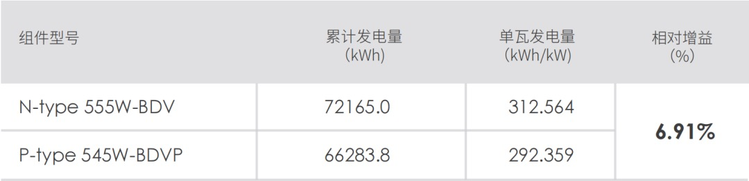 在兩個(gè)月采集周期內(nèi),通過(guò)該電站中P-PERC和N-TOPCon兩種技術(shù)類型的雙面組件發(fā)電對(duì)比,得出以下結(jié)論:N型TOPCon組件具有較高的組件效率,可以在有限空間內(nèi)安裝更多容量。此外,尤其是測(cè)試期間正處于當(dāng)?shù)叵募靖邷丨h(huán)境中,N型組件有著更優(yōu)的溫度系數(shù)、更低衰減率(LID和LeTID),更優(yōu)異的工作溫度,更高的雙面增益,以及更優(yōu)的弱光性能,從而產(chǎn)生更高的輸出功率和更多的單瓦發(fā)電量。