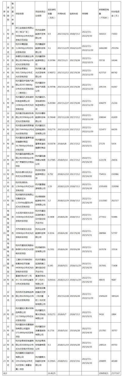 2023年富陽區(qū)非居民光伏發(fā)電項(xiàng)目申請(qǐng)區(qū)級(jí)財(cái)政補(bǔ)貼情況匯總表
