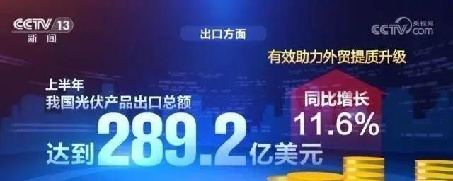 出口方面,上半年,我國光伏產(chǎn)品出口總額達到289.2億美元,同比增長11.6%,有效助力外貿(mào)提質(zhì)升級。
