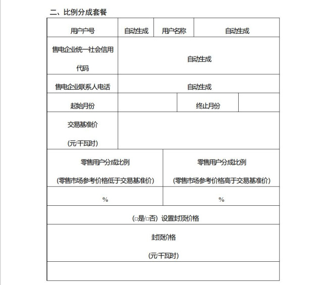 2.比例分成套餐:售電公司與零售用戶約定分成基準(zhǔn)價和分成比例,參照零售套餐參考價格進(jìn)行收益分享、風(fēng)險共擔(dān)的零售套餐;