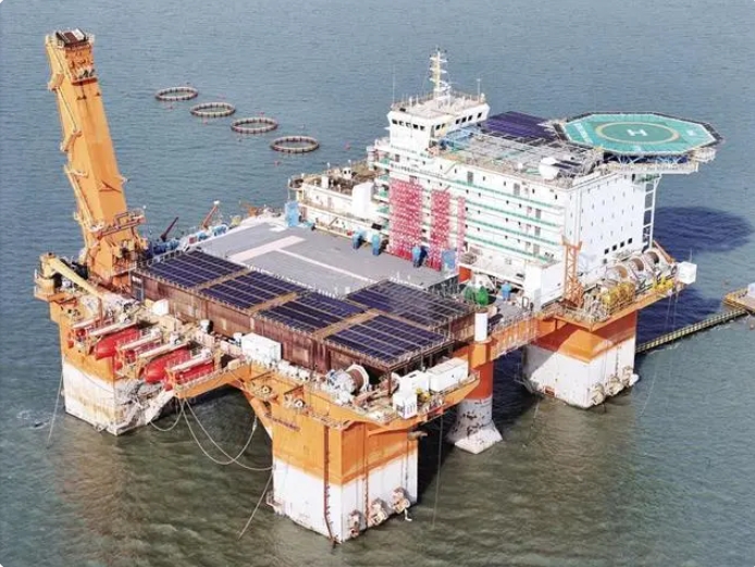 實證基地位于煙臺高新區(qū)四十里灣海域,由一座半潛式海上生活平臺改造而成,可克服風、浪、流的循環(huán)載荷和高鹽霧等復雜海上工況,對水位、結構受力、光照強度、發(fā)電量等數十項數據和光伏平臺項目的發(fā)電效率、新材料防腐性、抗風浪能力等關鍵因素進行綜合論證。