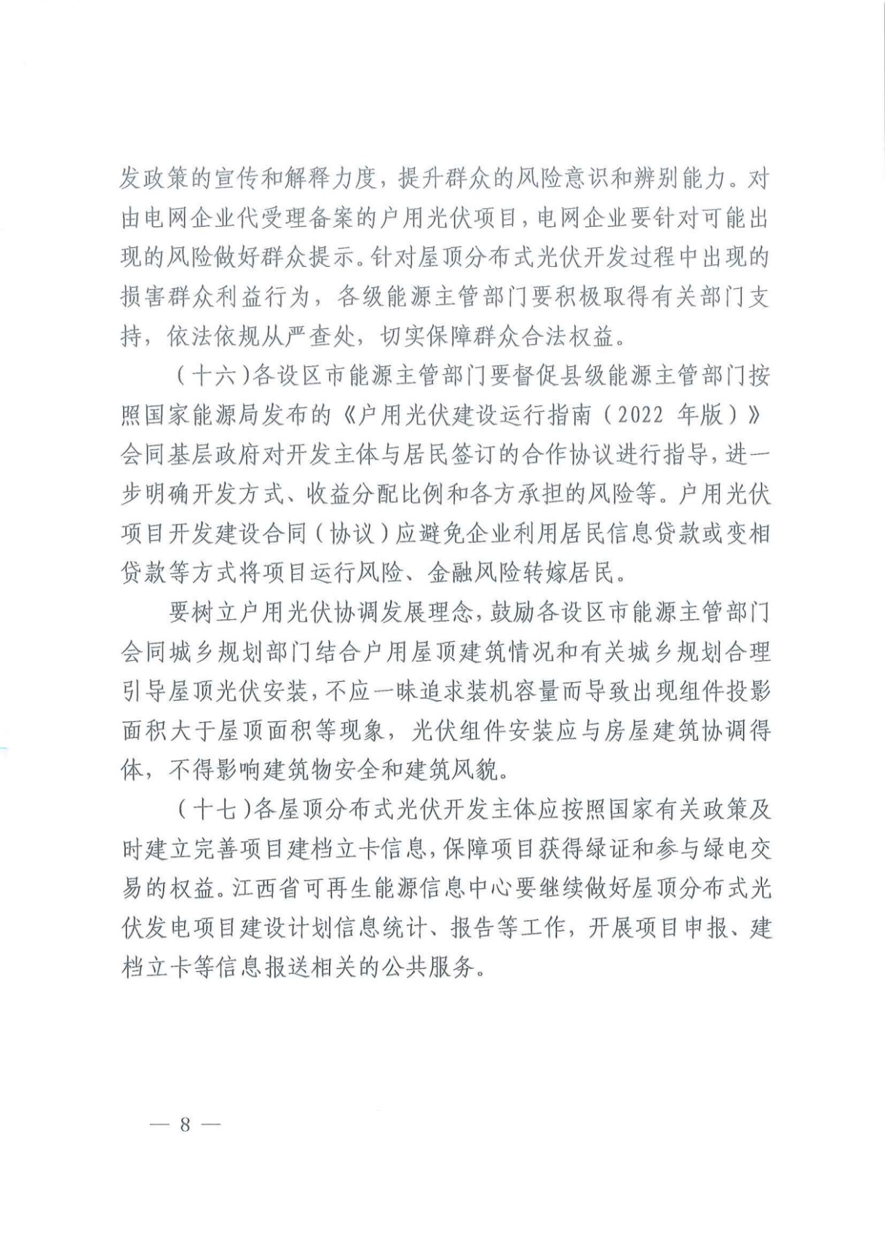 11月30日,江西省能源局印發(fā)關(guān)于進(jìn)一步推進(jìn)屋頂分布式光伏健康有序發(fā)展的通知(征求意見(jiàn)稿)》,就電網(wǎng)承載消納能力與發(fā)展不匹配等問(wèn)題給出針對(duì)性要求。