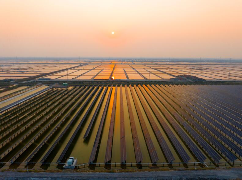 走進(jìn)濰坊濱海風(fēng)光儲智慧能源示范基地,波光粼粼的鹽池水面上,一排排光伏板、一座座逆變器機(jī)組整齊排列,與蔚藍(lán)的天空交相輝映,宛若一片盛放在廣袤鹽田上的光伏“藍(lán)?!?,在陽光的映照下熠熠生輝,勾勒出一派科技創(chuàng)新與生態(tài)環(huán)境相得益彰的生態(tài)畫卷。