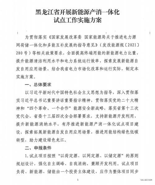 黑龍江啟動新能源產消一體化試點項目申報工作