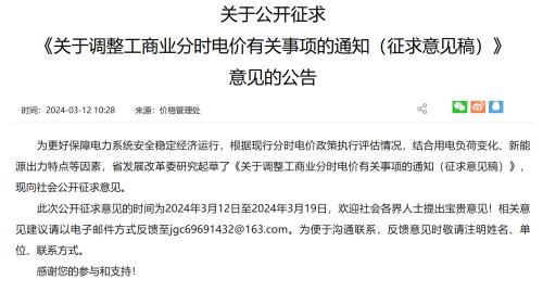 關(guān)于調(diào)整工商業(yè)分時(shí)電價(jià)有關(guān)事項(xiàng)的通知(征求意見(jiàn)稿)