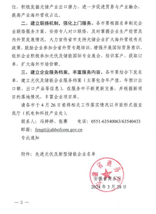 文件要求,各市要根據(jù)名單制定企業(yè)聯(lián)絡(luò)服務(wù)方案,安排專人對口聯(lián)絡(luò),及時掌握企業(yè)生產(chǎn)經(jīng)營及內(nèi)外貿(mào)發(fā)展情況。大力宣傳省市支持光儲企業(yè)擴(kuò)大海外營收有關(guān)政策,鼓勵企業(yè)參加全省外貿(mào)專題培訓(xùn),增強(qiáng)開展國際貿(mào)易意識組織企業(yè)積極參加光伏及儲能國際專業(yè)展會,結(jié)識客戶、獲取訂單,擴(kuò)大海外市場份額。
