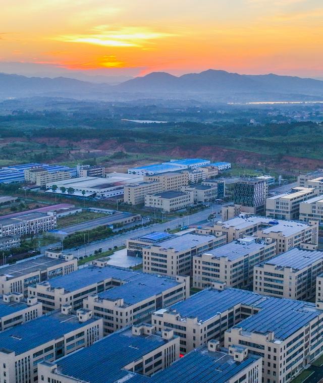 2024年7月16日,道縣高新技術(shù)產(chǎn)業(yè)開發(fā)區(qū)智能制造機械裝備產(chǎn)業(yè)園,光伏面板與夏日朝霞相映成景。