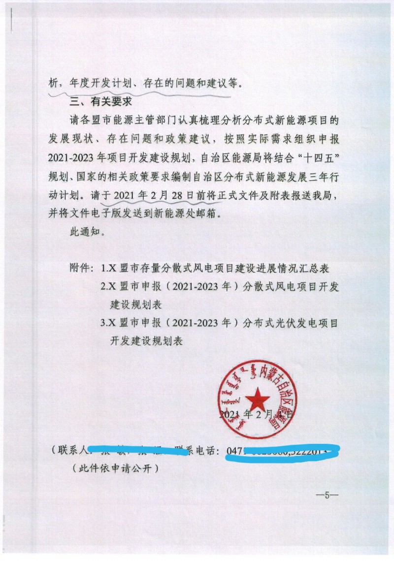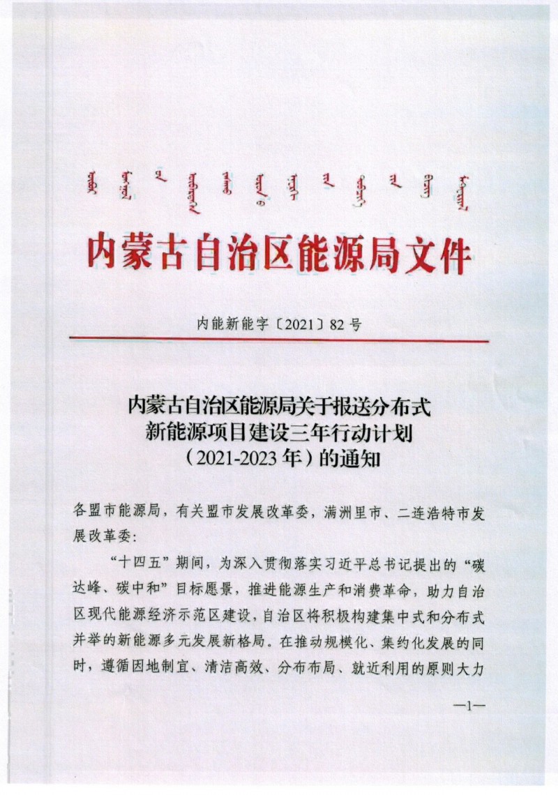 近日,內(nèi)蒙古自治區(qū)能源局發(fā)布關(guān)于報送《分布式新能源項目建設三年行動計劃(2021-2023年)》的通知。