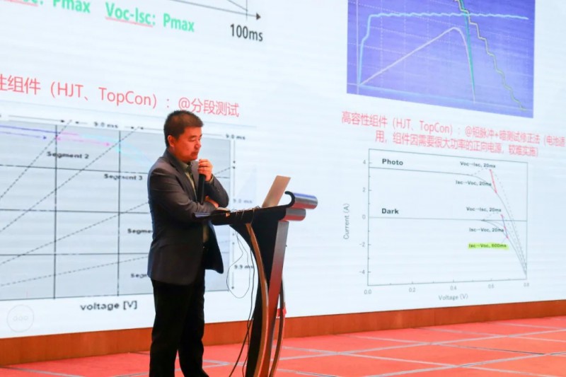 北京德雷射科光電有限公司總經(jīng)理林慧軍,作了《高容性太陽電池組件I-V測試最新研究》的報告,分析了當(dāng)前高容性太陽電池組件I-V測試的現(xiàn)狀,然后針對光伏產(chǎn)品“容性高,測不準(zhǔn)”的行業(yè)痛點(diǎn),展示了該公司所做的技術(shù)工作及取得的重大成果。