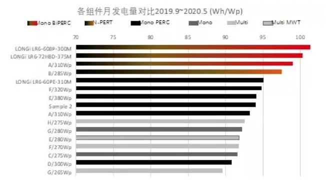 在德國PV Magazine雜志組織的“PV Magazine Test”組件戶外發(fā)電測試中,隆基雙面組件長期位居發(fā)電量排行榜榜首,發(fā)電量顯著領(lǐng)先于眾多參評組件。