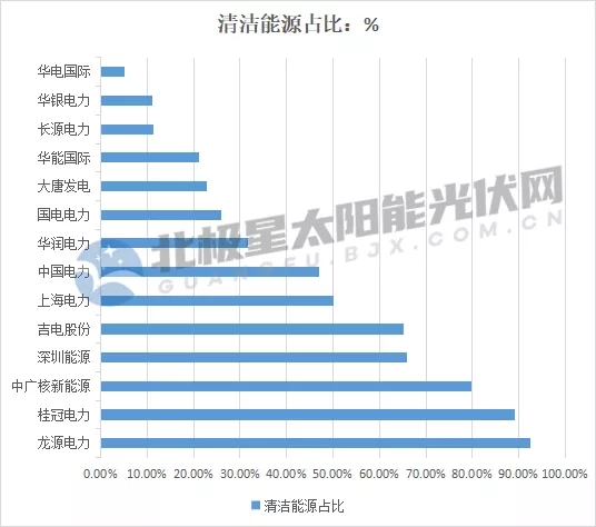 從清潔能源占比情況來看,龍?jiān)措娏Α⒐鸸陔娏?、中廣核新能源、深圳能源、吉電股份、上海電力清潔能源占比超過50%,其中龍?jiān)措娏σ?2.5%遙遙領(lǐng)先,桂冠電力清潔能源占比達(dá)到89%,中廣核新能源為79.8%。