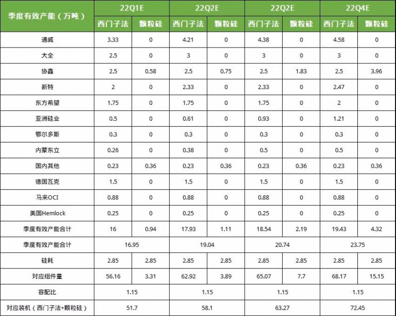 3. 22年顆粒硅潛在市場需求有望達(dá)22萬噸