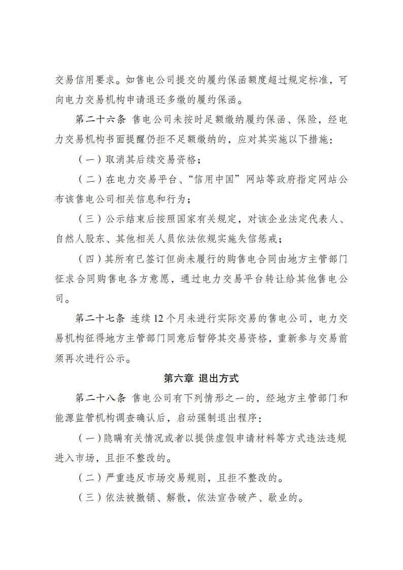 為貫徹落實《中共中央、國務院關于進一步深化電力體制改革的若干意見》(中發(fā)〔2015〕9號)和電力體制改革配套文件精神,國家發(fā)展改革委、國家能源局制定了《售電公司管理辦法》,現(xiàn)印發(fā)給你們,請按照執(zhí)行。《國家發(fā)展改革委、國家能源局關于印發(fā)<售電公司準入與退出管理辦法>和<有序放開配電網(wǎng)業(yè)務管理辦法>的通知》(發(fā)改經(jīng)體〔2016〕2120號)中《售電公司準入與退出管理辦法》廢止。