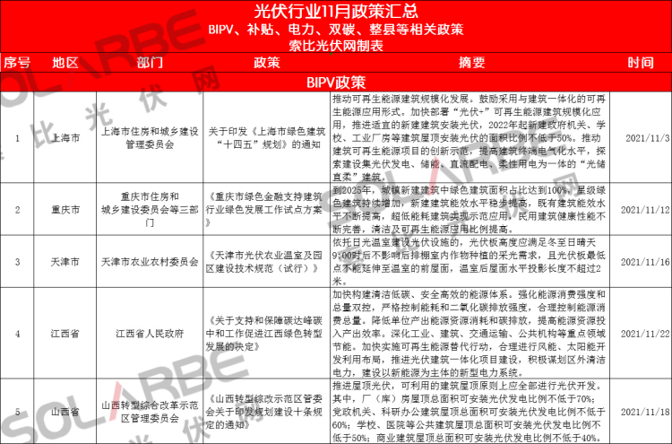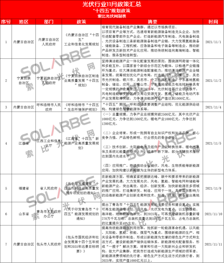 那么,11月份的光伏行業(yè)有哪些政策值得重點關注呢?下面來看索比光伏網(wǎng)的梳理。
