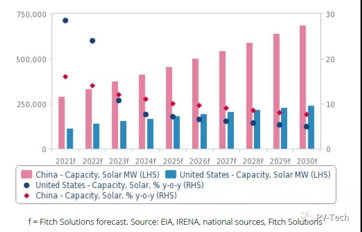 報告稱,太陽能發(fā)電量2030年將達到771TWh,同期,太陽能在電力結(jié)構(gòu)中的占比將從3.5%增至7.5%。“包括內(nèi)蒙古的5GW和青海的3GW太陽能項目在內(nèi),” Fitch Solutions提出的愿景“獲得了地面大型光伏項目的支持。”