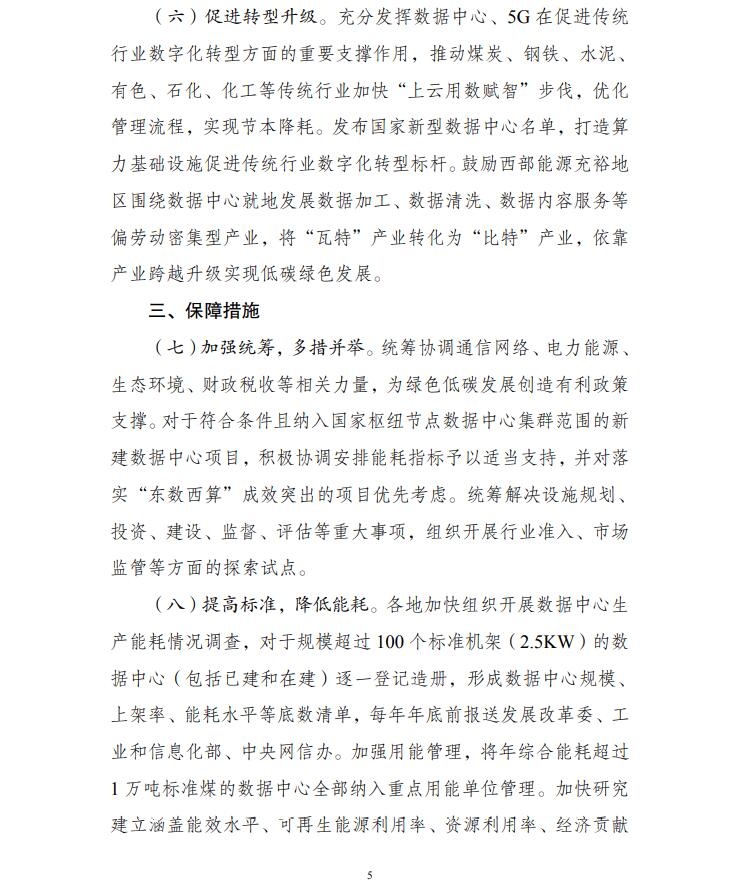 為貫徹落實《中共中央 國務(wù)院關(guān)于完整準(zhǔn)確全面貫徹新發(fā)展理念做好碳達峰碳中和工作的意見》,按照《2030年前碳達峰行動方案》統(tǒng)一部署,有序推動以數(shù)據(jù)中心、5G為代表的新型基礎(chǔ)設(shè)施綠色高質(zhì)量發(fā)展,發(fā)揮其“一業(yè)帶百業(yè)”作用,助力實現(xiàn)碳達峰碳中和目標(biāo),國家發(fā)展改革委、中央網(wǎng)信辦、工業(yè)和信息化部、國家能源局聯(lián)合研究制定了《貫徹落實碳達峰碳中和目標(biāo)要求 推動數(shù)據(jù)中心和5G等新型基礎(chǔ)設(shè)施綠色高質(zhì)量發(fā)展實施方案》?,F(xiàn)印發(fā)給你們,請結(jié)合實際,認真抓好貫徹落實。