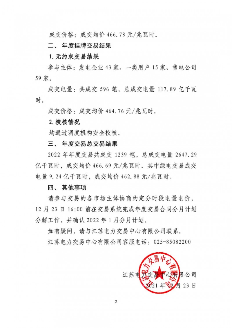 12月23日,江蘇電力交易中心有限公司發(fā)布了2022年江蘇電力市場年度交易結(jié)果。江蘇電力交易中心有限公司于2021年12月13日至12月17日開展了年度雙邊協(xié)商交易,于12月16日至17日、20日至21日開展了年度掛牌交易。