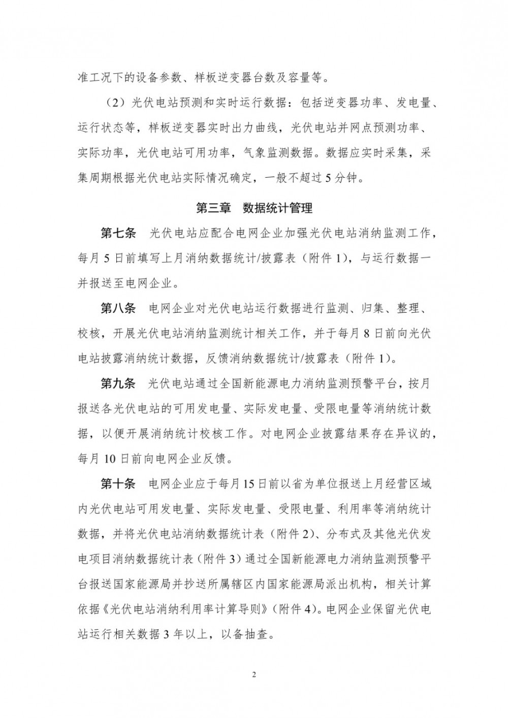 《通知》明確,電網(wǎng)企業(yè)應(yīng)于每月15日前以省為單位報(bào)送上月經(jīng)營(yíng)區(qū)域內(nèi)光伏電站可用發(fā)電量、實(shí)際發(fā)電量、受限電量、利用率等消納統(tǒng)計(jì)數(shù)據(jù),并將光伏電站消納數(shù)據(jù)統(tǒng)計(jì)表、分布式及其他光伏發(fā)電項(xiàng)目消納數(shù)據(jù)統(tǒng)計(jì)表通過(guò)全國(guó)新能源電力消納監(jiān)測(cè)預(yù)警平臺(tái)報(bào)送國(guó)家能源局并抄送所屬轄區(qū)內(nèi)國(guó)家能源局派出機(jī)構(gòu),相關(guān)計(jì)算依據(jù)《光伏電站消納利用率計(jì)算導(dǎo)則》。電網(wǎng)企業(yè)保留光伏電站運(yùn)行相關(guān)數(shù)據(jù)3年以上,以備抽查。
